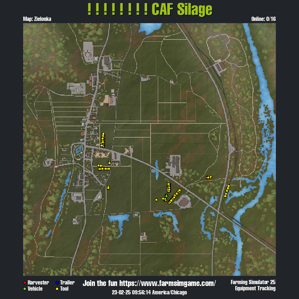 Welcome to Chill And Farm( CAF ) 's Silage server, Running 6 Krone Forage wagons and trailers, 6 tractor and trailer to run to bunkers and trucks to sell silage. The main bunkers are in F57-58 and local to all the fields as well as the sell point. We have even made it easier to find by placing a DIscord farm ( purple ). Come say hi and have some fun in a relaxing server